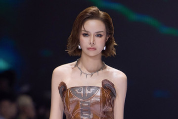 Hoa hậu Điện ảnh TPHCM Sella Trương trình diễn tự tin trong tiếng hò reo của khán giả trong đêm giới thiệu bộ sưu tập của nhà thiết kế Phạm Trần Thu Hằng.